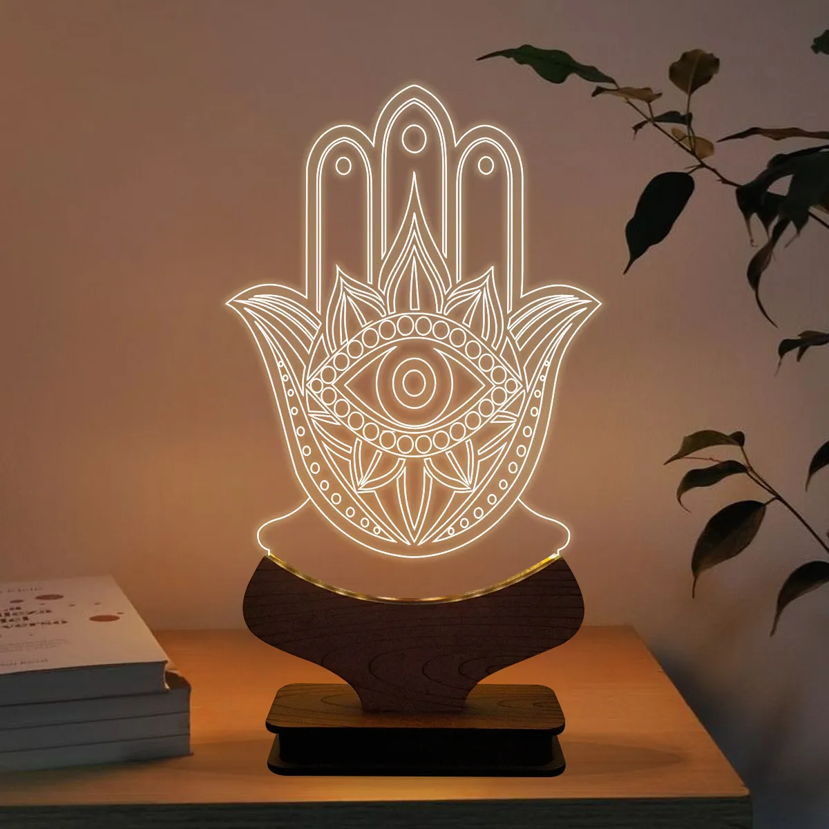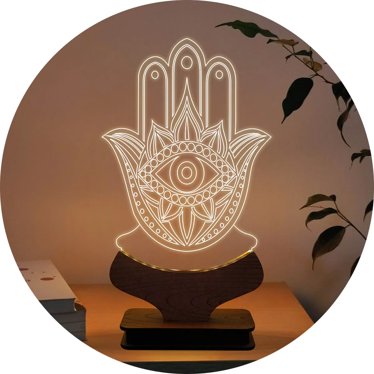 Luminária de mesa abajur led Místico Mão de Fátima Hamsá