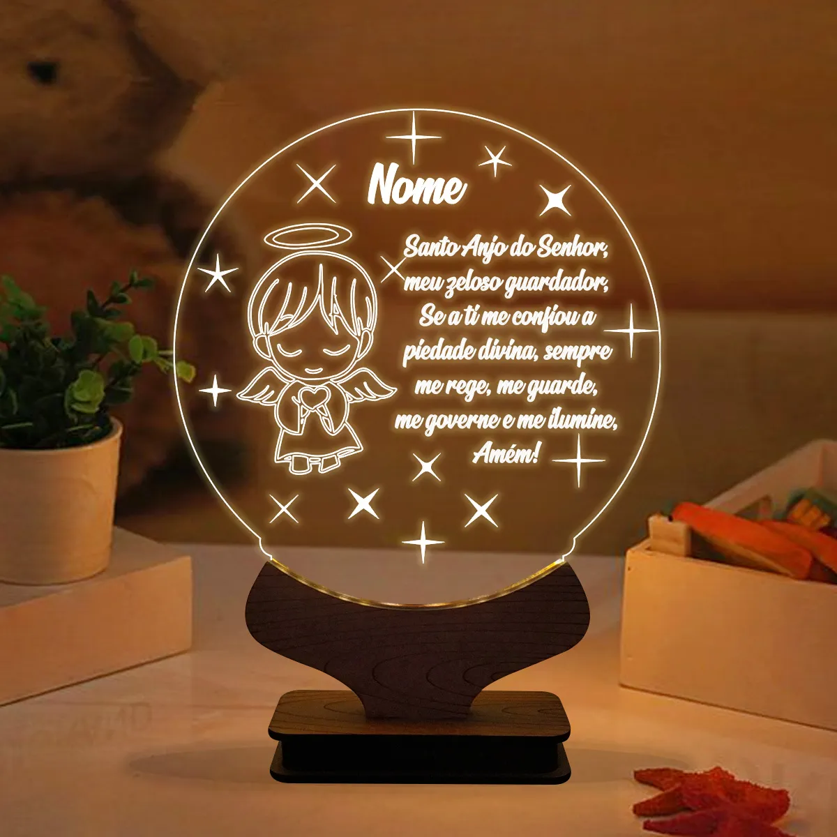 Luminária de mesa abajur led personalizada Infantil Oração Santo Anjo