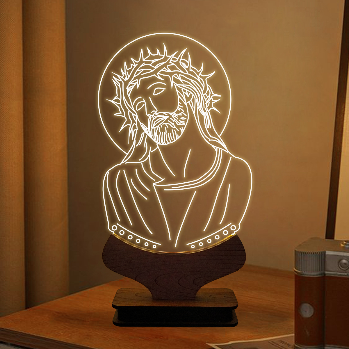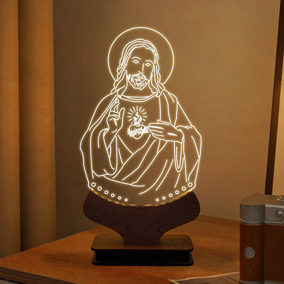 Luminária de mesa abajur led religiosa sagrado coração de jesus