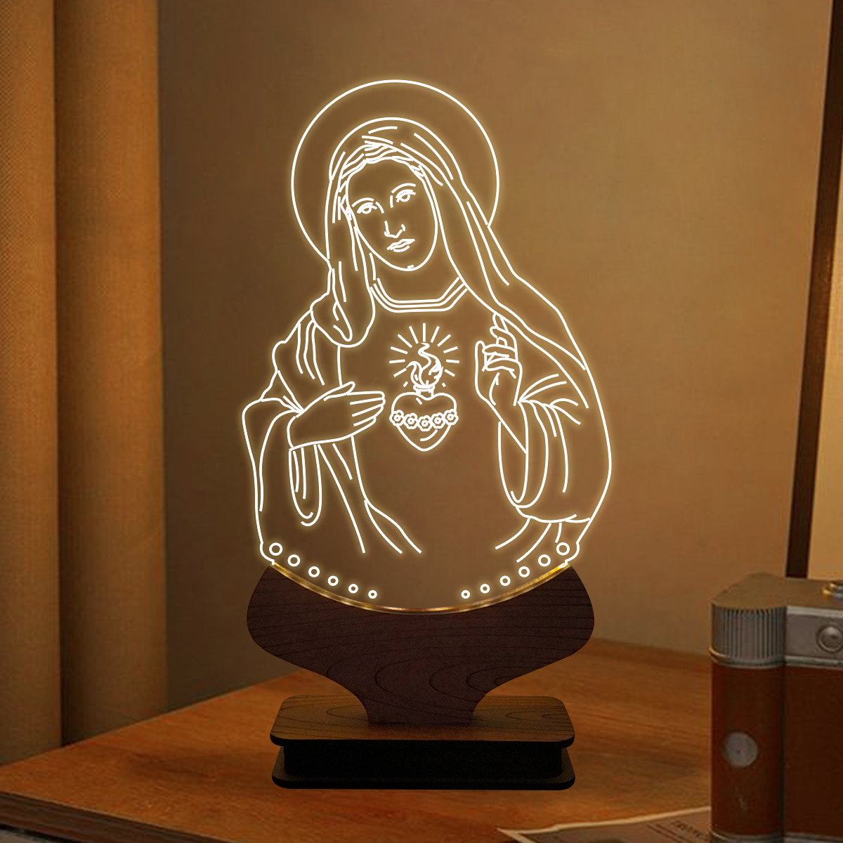Luminária de mesa abajur led religiosa sagrado coração de maria