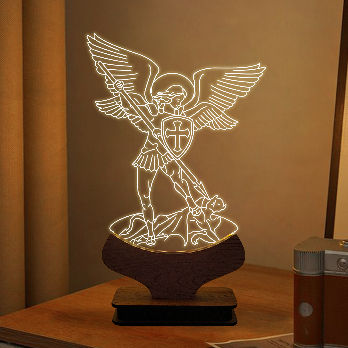 Luminária de mesa abajur led religiosa são miguel arcanjo