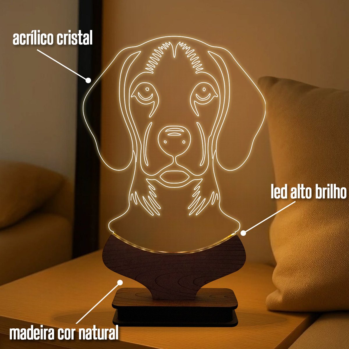 A luminária é produzida em acrílico cristal de alta pureza, com base em madeira MDF. Possui led 5050 de alto brilho, cor branco quente (amarelado), alimentado por uma fonte bivolt automática inclusa, oferecendo uma excelente luminosidade. Contém acabamentos simétricos garantindo a qualidade, produzidos a laser.