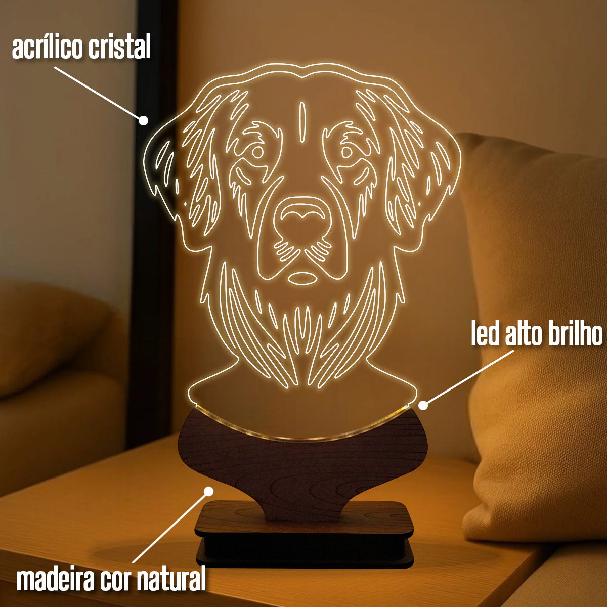A luminária é produzida em acrílico cristal de alta pureza, com base em madeira MDF. Possui led 5050 de alto brilho, cor branco quente (amarelado), alimentado por uma fonte bivolt automática inclusa, oferecendo uma excelente luminosidade. Contém acabamentos simétricos garantindo a qualidade, produzidos a laser.