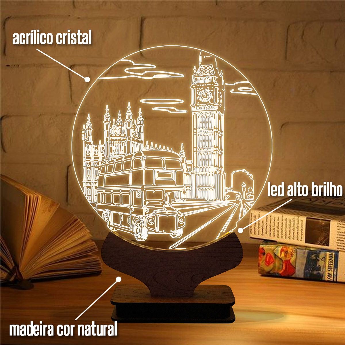 Luminária de mesa abajur led Cidades Londres Inglaterra