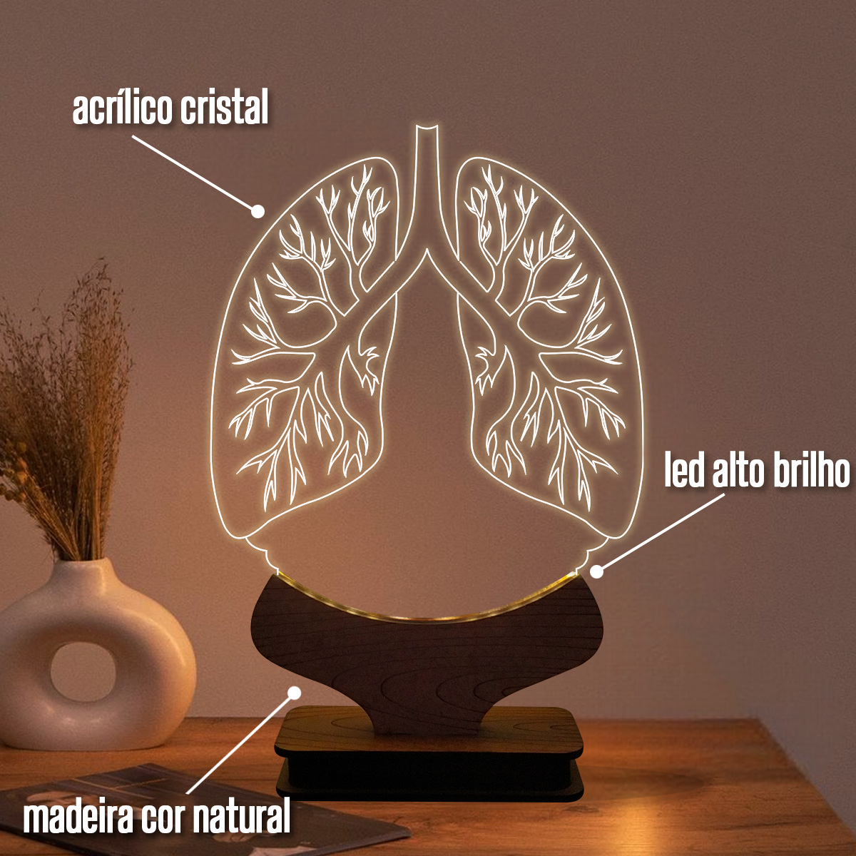 Luminária de mesa abajur led Corpo Humano Pulmão