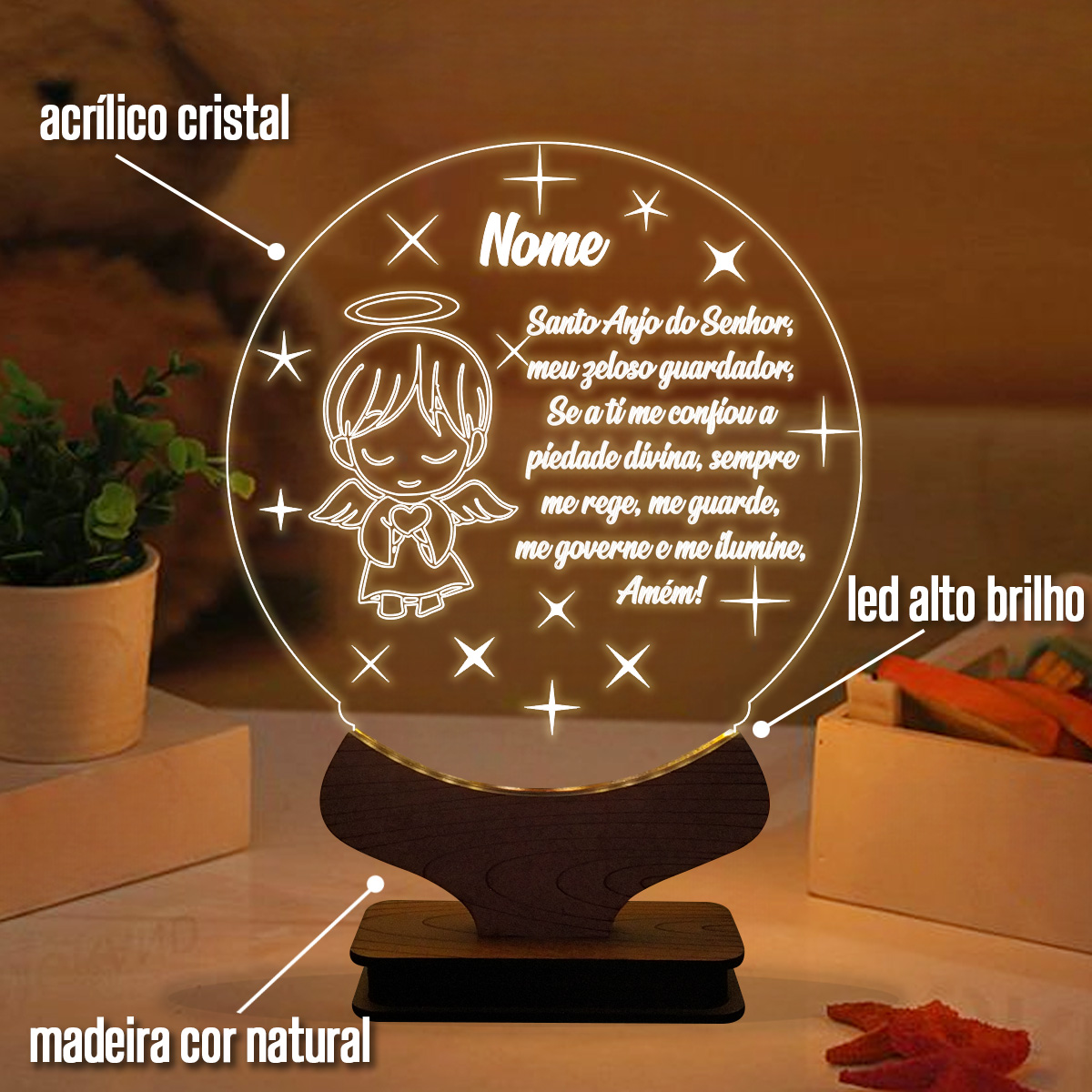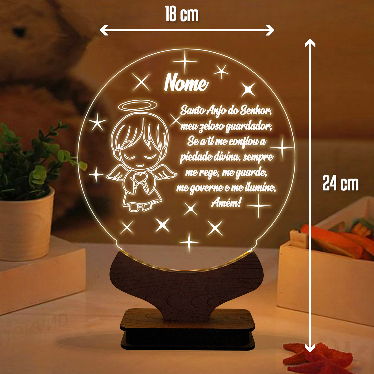 Luminária de mesa abajur led personalizada Infantil Oração Santo Anjo