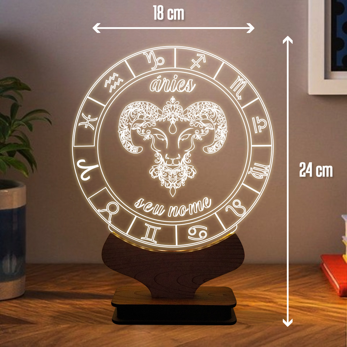 Luminária de mesa abajur led personalizada signo áries
