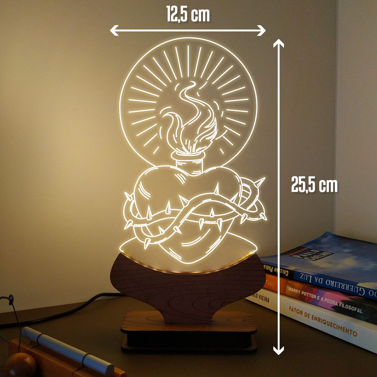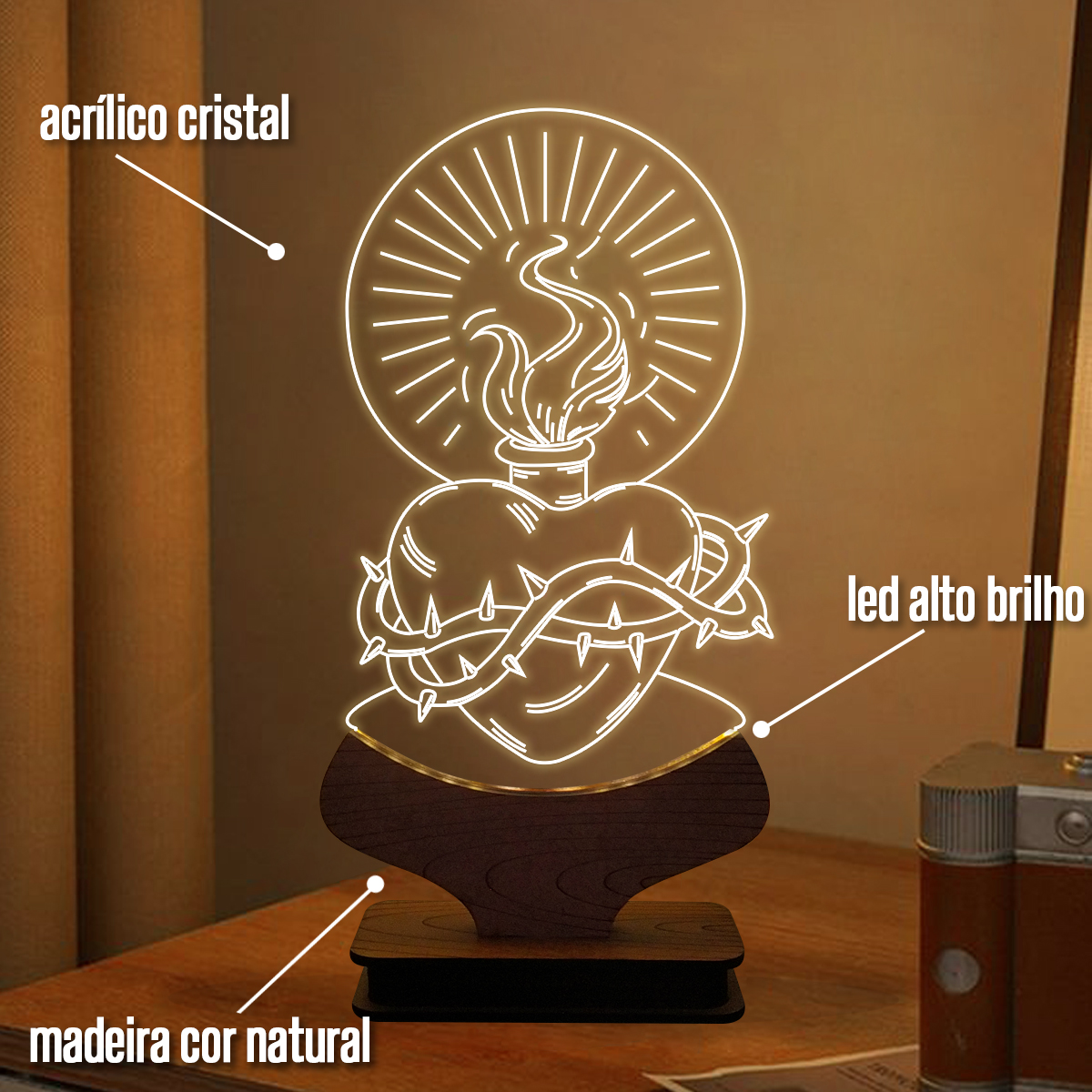 Com sua luz suave e quente, essa luminária pode criar um ambiente acolhedor e confortável para momentos de oração e reflexão. E com a imagem do Sagrado Coração de Jesus gravada com cuidado na luminária, você pode se sentir cercado pela presença amorosa do Senhor.