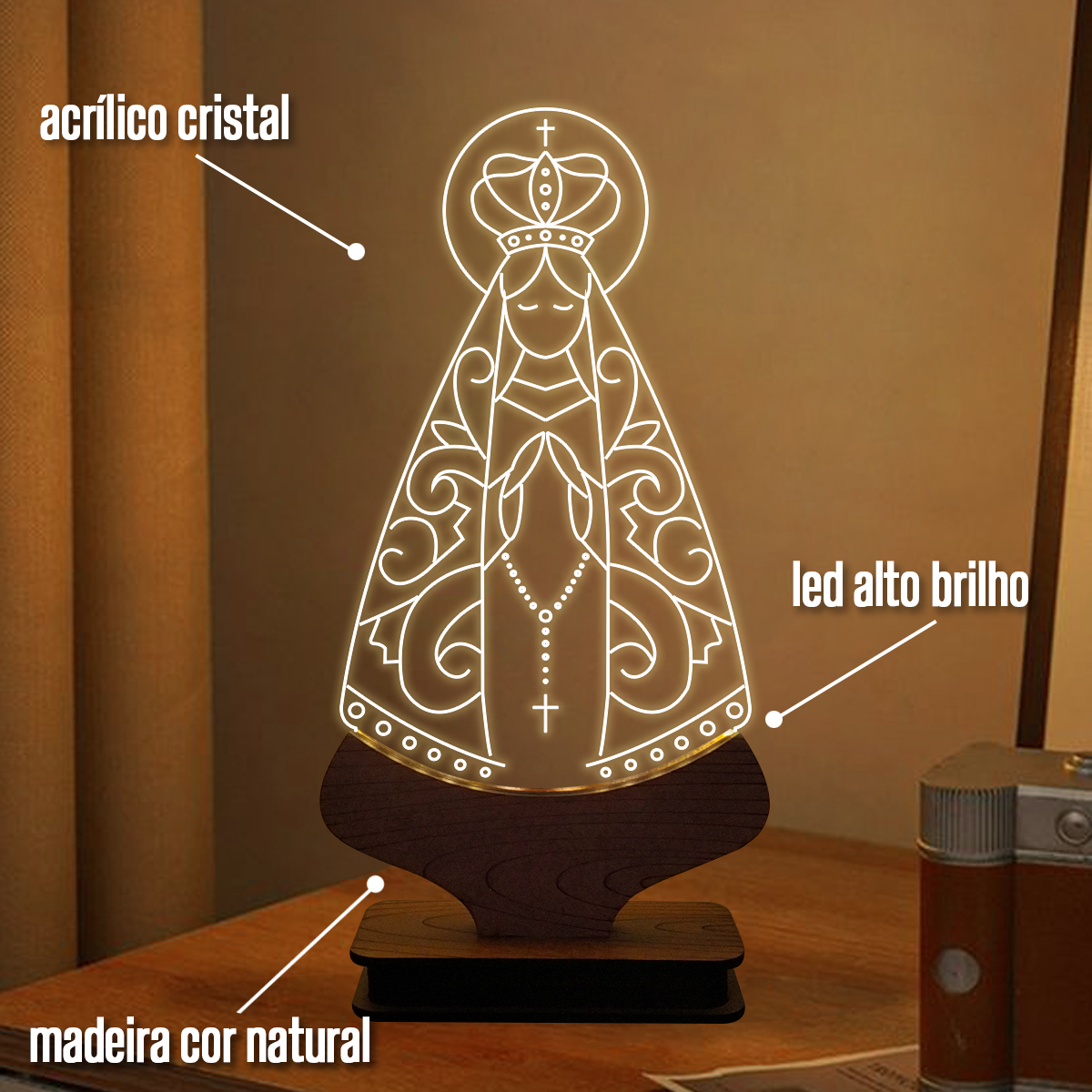 Luminária de mesa abajur led religiosa nossa senhora aparecida modelo 1